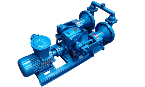 電機通過減速箱帶動左右兩端柱塞上面的隔膜一前一后往復運動。在左右兩個泵腔內,裝有上下四個單向球閥,隔膜的運動,造成工程腔內的容積的改變,迫使四個單向球閥交替地開啟和關閉,從而將液體不斷地吸入和排出。